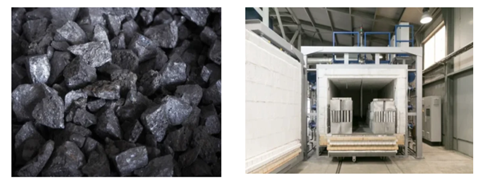 The initial phase of silicon metal production involves the extraction of raw materials, primarily quartz, which is then crushed and heated to yield silicon dioxide (SiO2). This SiO2 is subsequently mixed with carbon and subjected to high-temperature treatment in a submerged electric arc furnace (EAF), resulting in the production of silicon metal. - Reduction