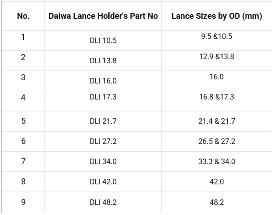 - The lance holders come in customized sizes depending on the outside diameters of the Thermic Lances.