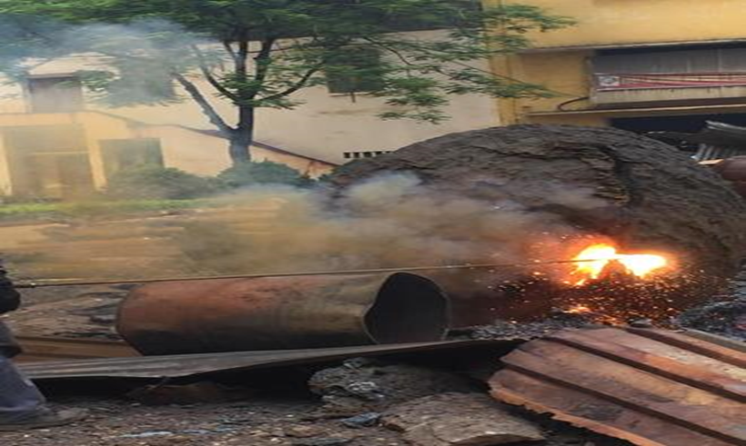 The image below shows the scrap cutting with the help of Thermic Lance as the 1st step: